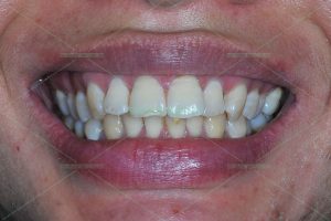 Răng cửa dưới có dấu hiệu thiểu sản men răng, màu răng vàng nhẹ.
