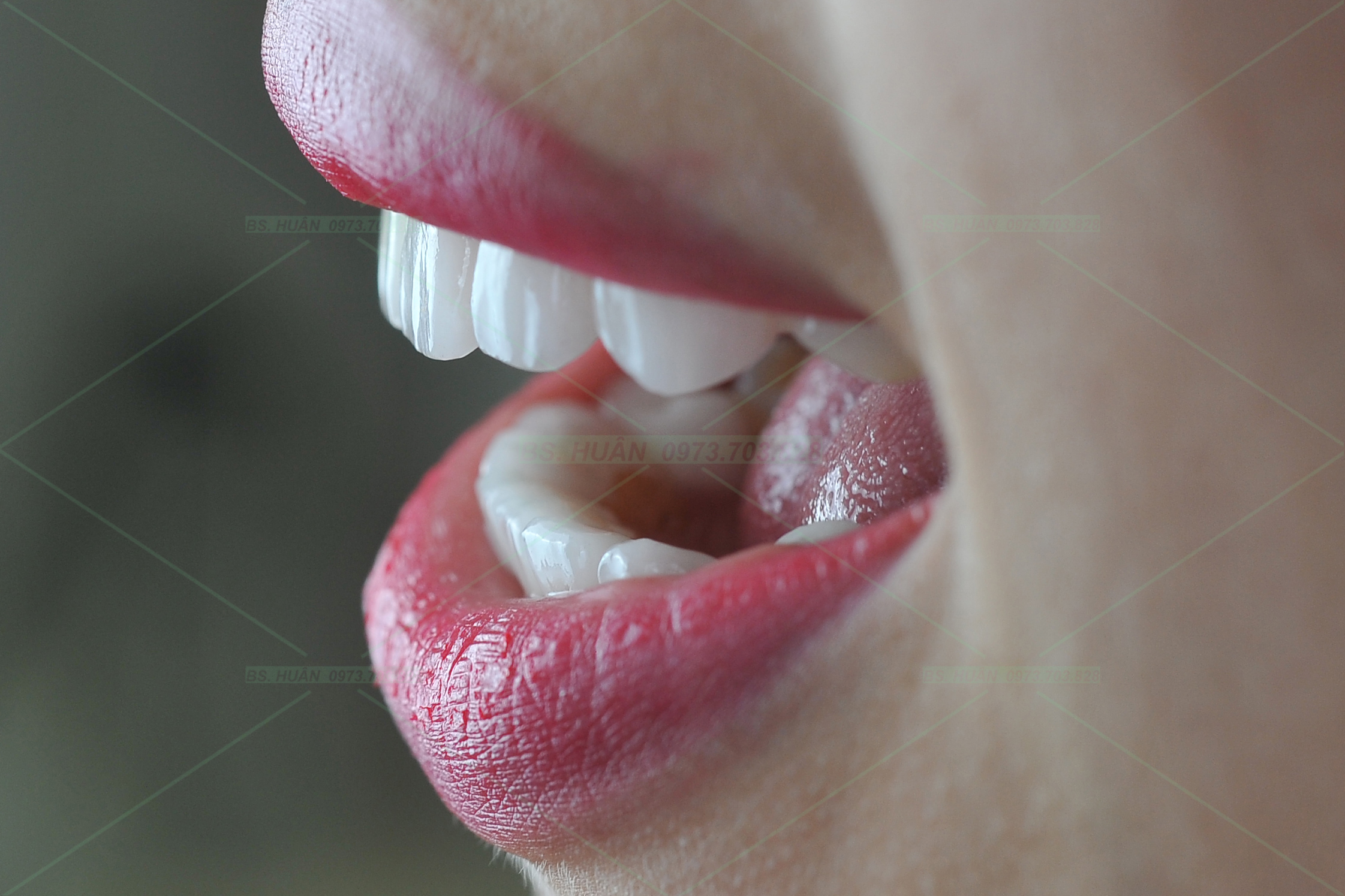 Ban đầu: 2 răng cửa mẻ rìa cắn, không đều nhau, màu răng có màu hơi vàng